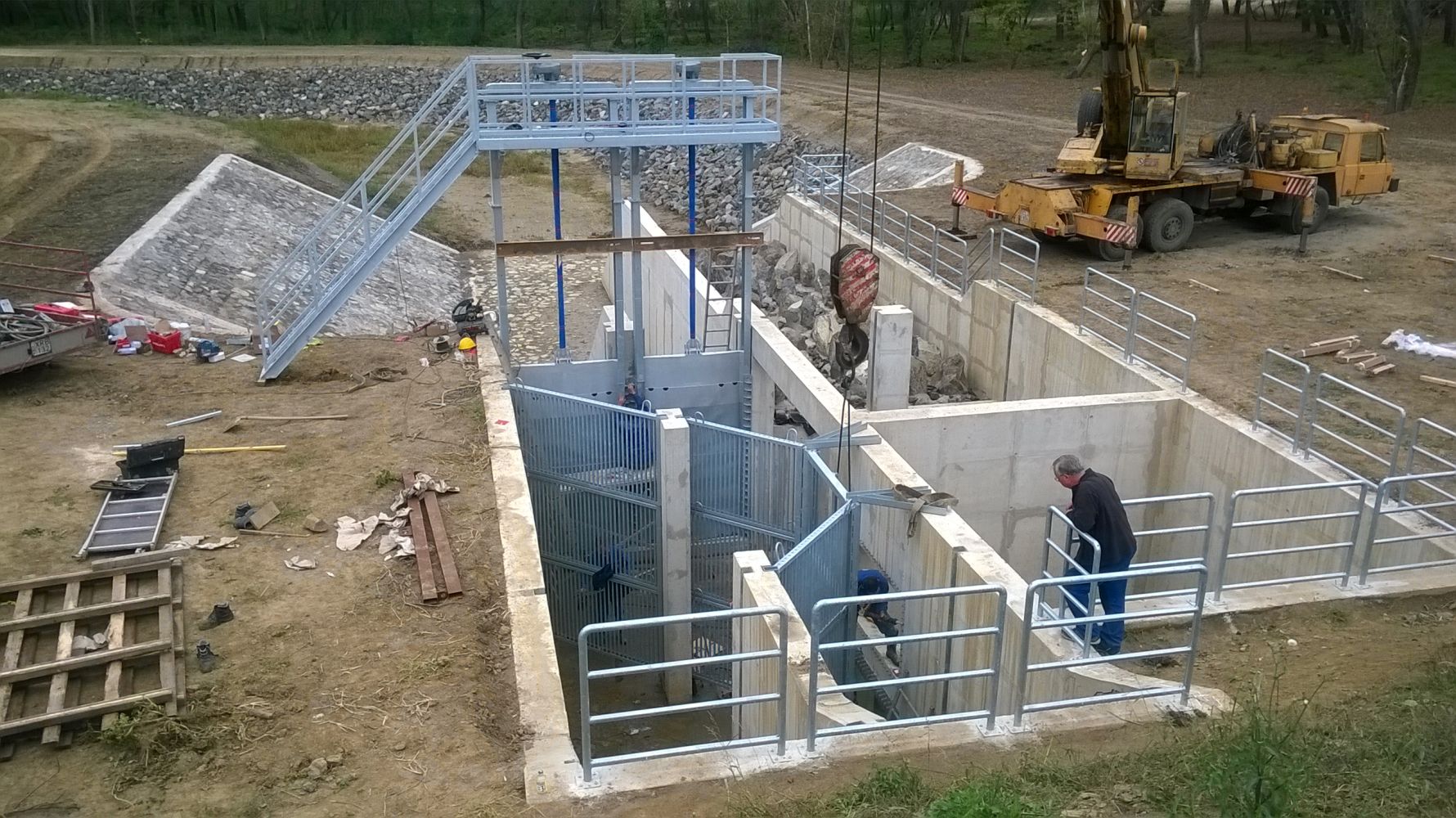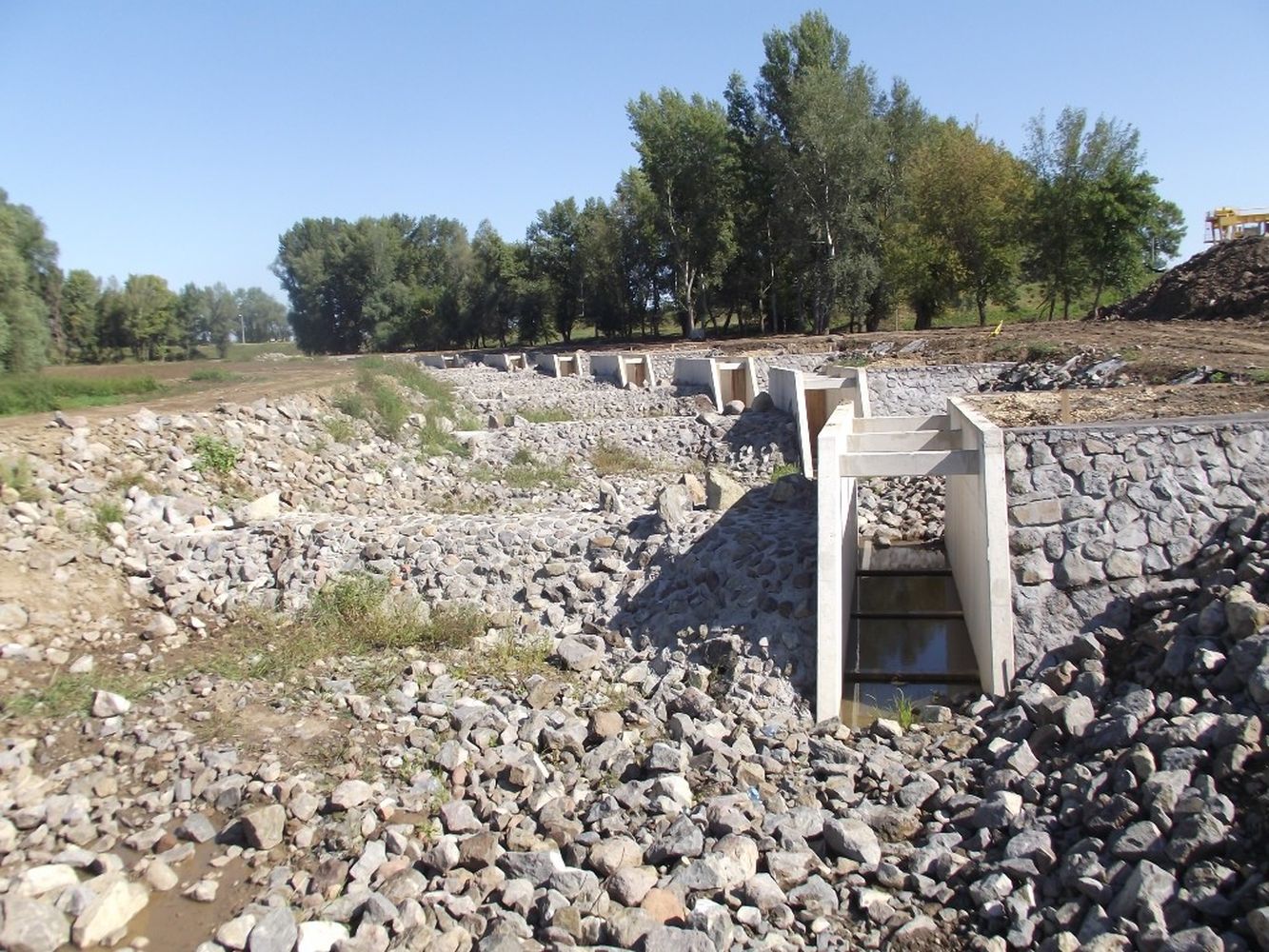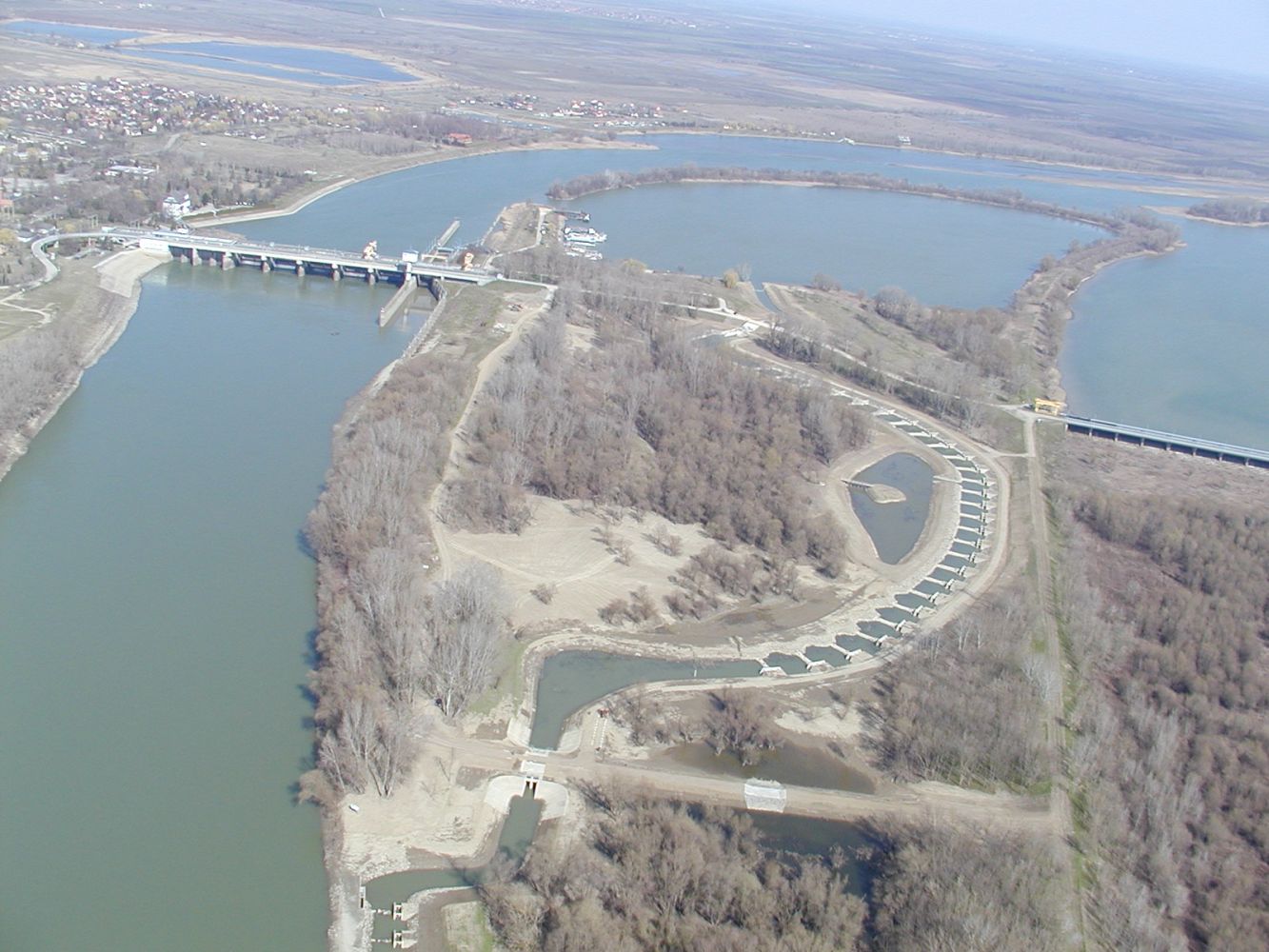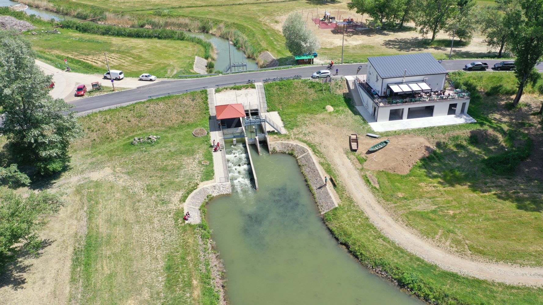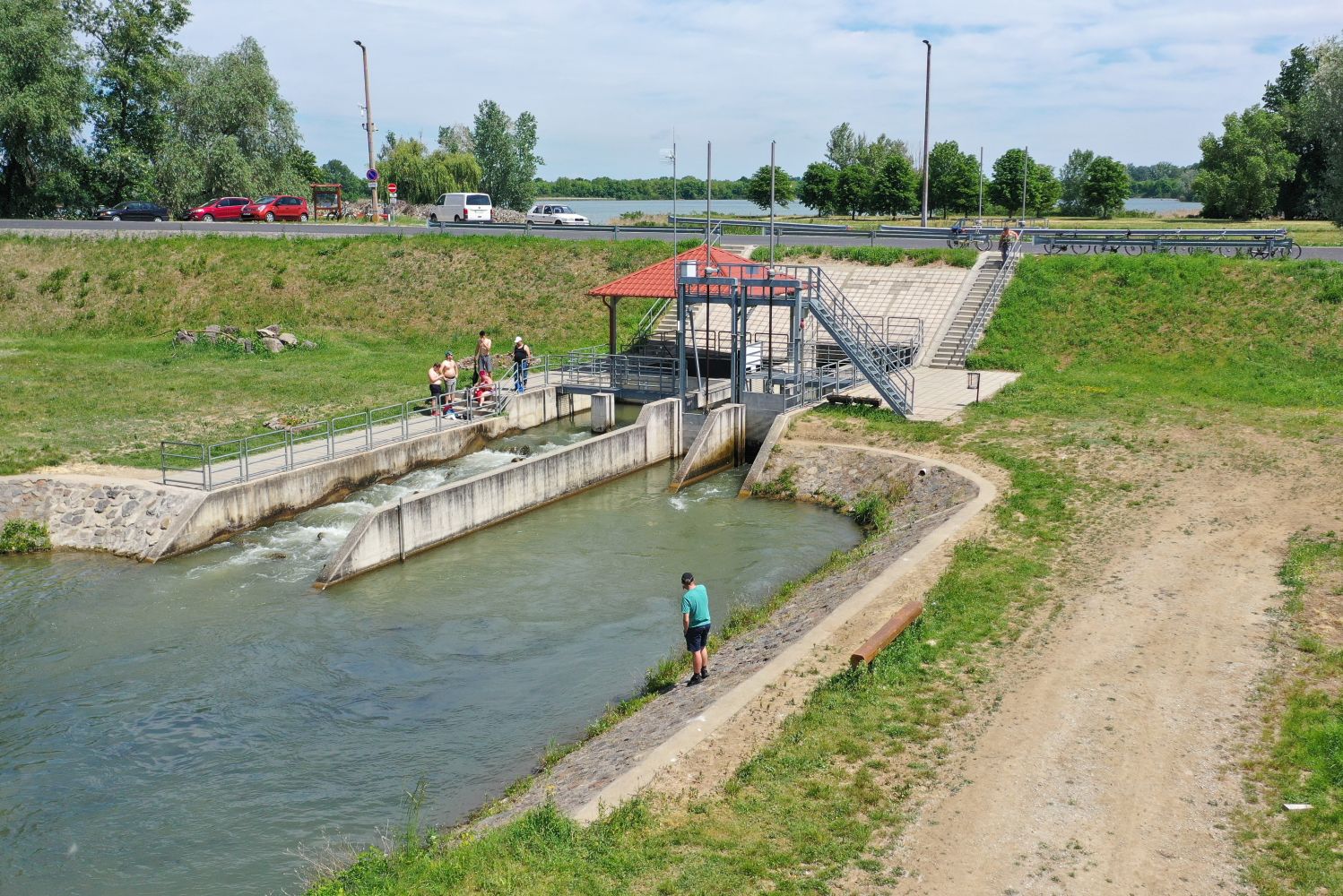 A mintegy 120 ezer köbméternyi földmunkával kialakított, 1371 méter hosszú, akár 10 méteres vízszintkülönbséget áthidaló, vasbeton- és terméskő-labirintus a Tisza-tóhoz 180 méter hosszú csatornával kapcsolódik. Az üzemi útnál létesült a mélyküszöbű táplálózsilip, illetve durva rámpa, ahol a halak mozgását üvegen keresztül láthatjuk.