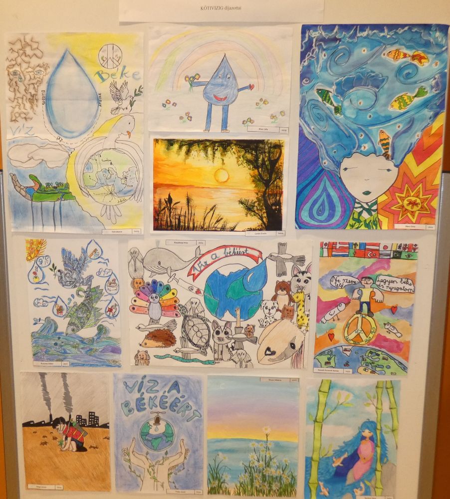A víz világnapi képzőművészeti pályázatunkra 216 alkotás érkezett az óvodásoktól a középiskolásokig. A díjátadót pénteken 11 órai kezdettel tartották a szolnoki Aba-Novák Agóra Kulturális Központban. Az eseményen a Hétszínvirág óvoda nagycsoportosainak víz tematikájú műsora után Rózsa Helga, az MHT területi titkára és Tóth Péter, igazgatóságunk vízrajzi osztályának vezetője mondott köszöntőt, majd a legjobb pályamunkák alkotóit díjazták. Végül a gyerekek és szüleik megkóstolhatták a víz világnapi csokitortát.